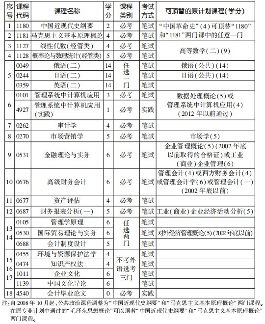 2022年4月天津自考本科會計專業計劃