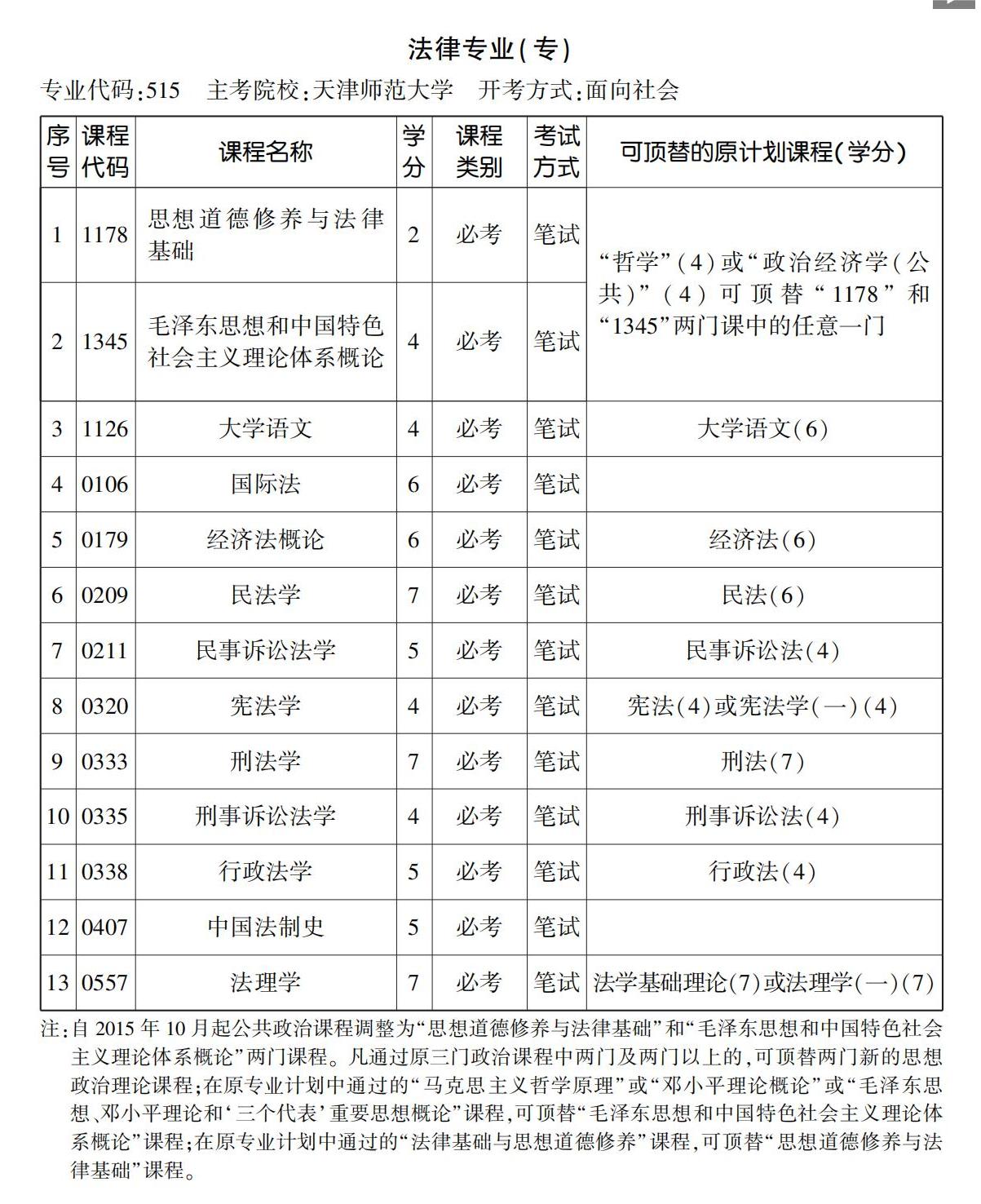 2023年10月天津自考專科法律專業計劃
