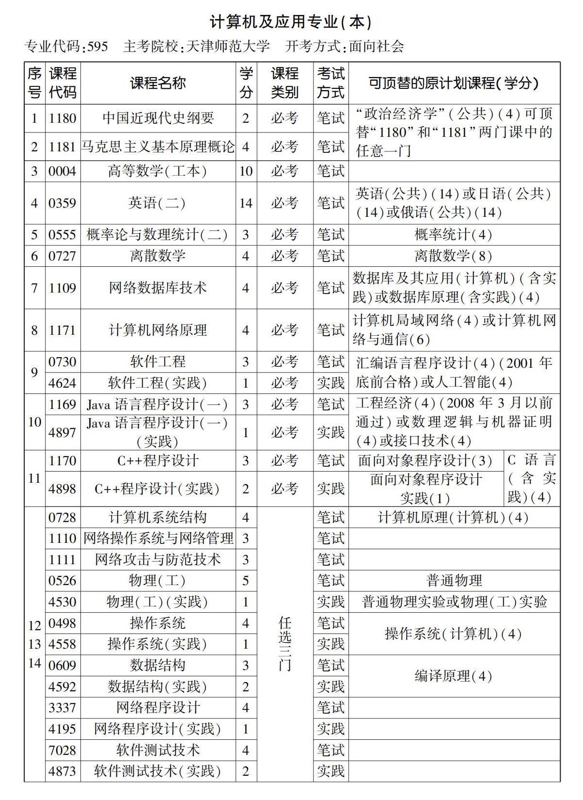2023年10月天津自考本科計算機及應用專業計劃