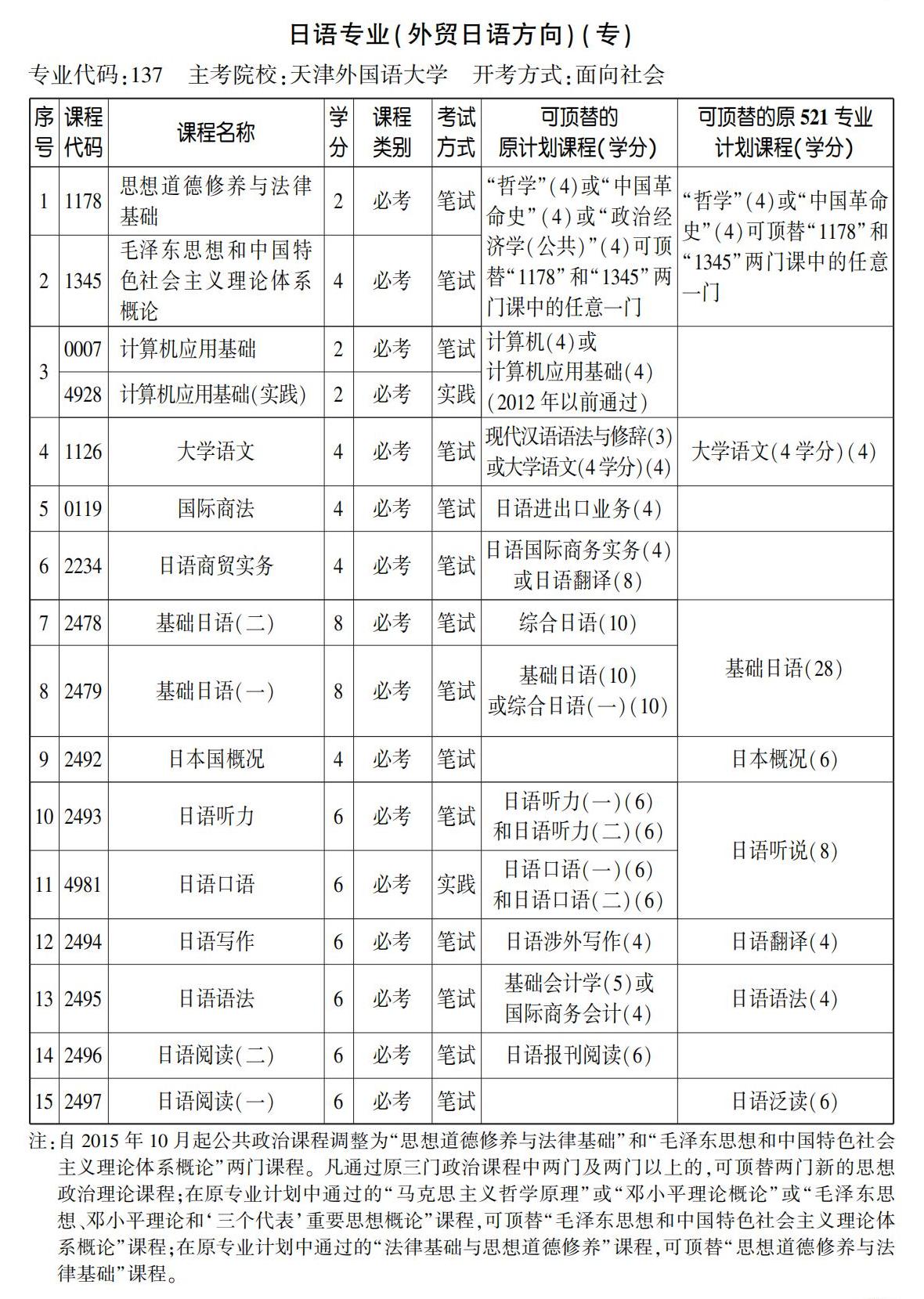 2023年4月天津自考??迫照Z(外貿日語方向)專業計劃