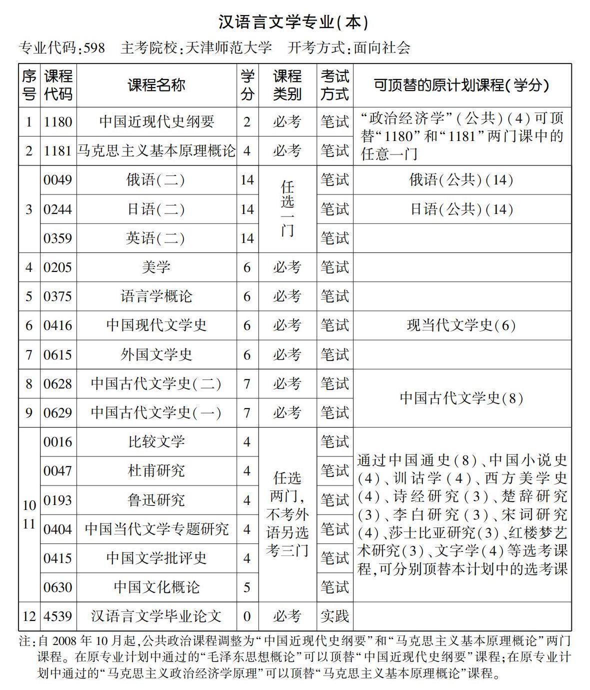 2023年4月天津自考本科漢語言文學專業計劃