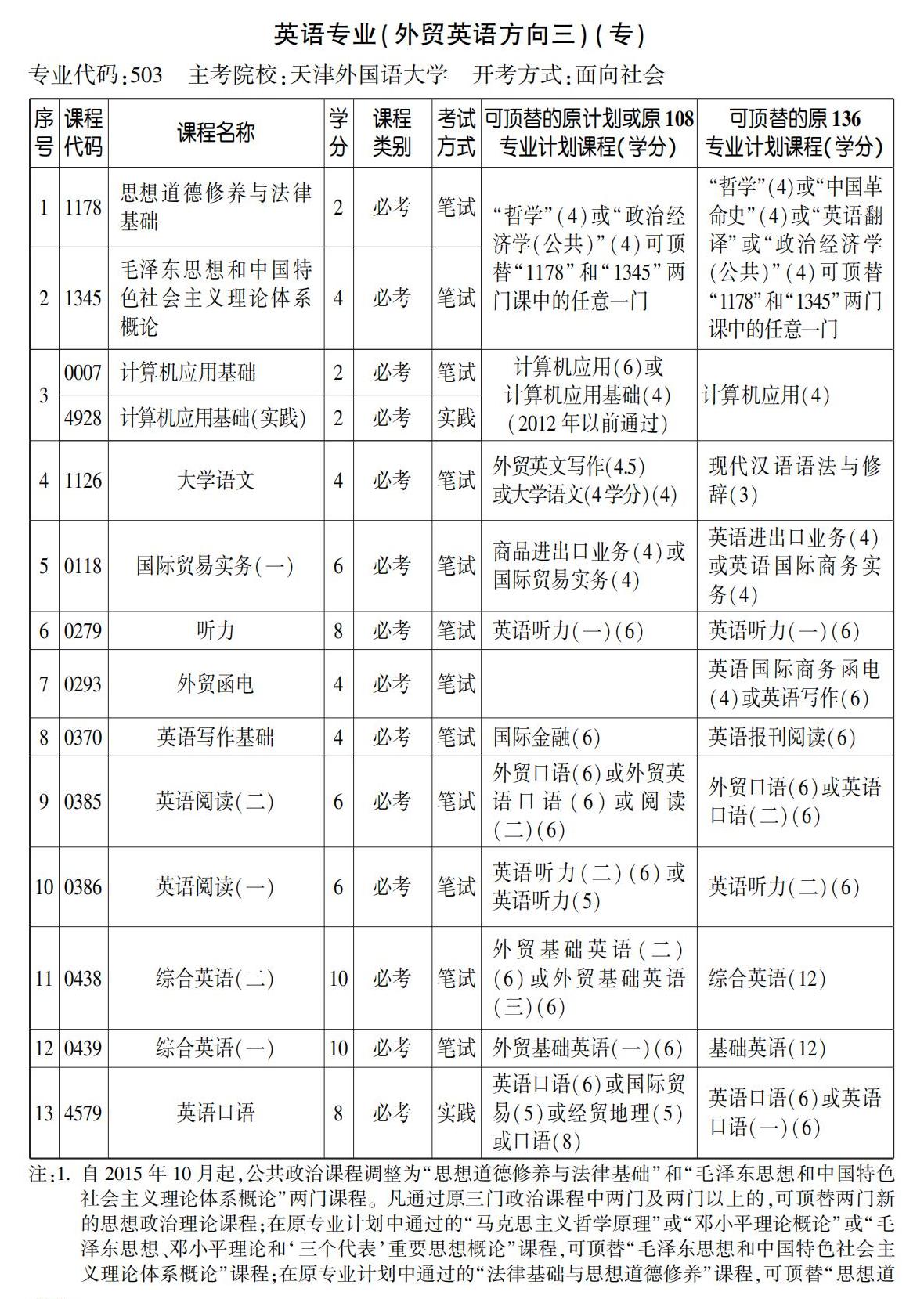 2022年10月天津自考??朴⒄Z(外貿英語方向三)專業計劃(??歼^渡)