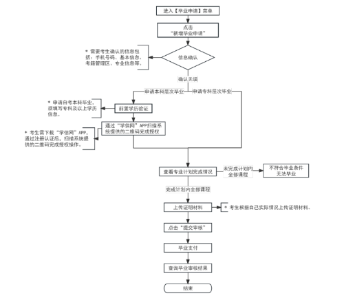 2.考生在申請畢業時個人信息要保證準確無誤(包括姓名、身份證號、性別、出生日期等),如有變動或錯誤須及時聯系所屬考籍管理區提出申請并進行現場確認。