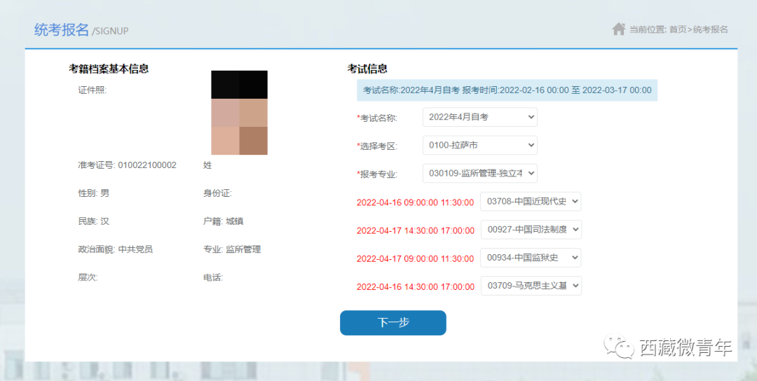 登錄西藏教育考試院官網(http://zsks.edu.xizang.gov.cn)或“西藏微青年”微信公眾號,點擊“西藏自治區高等教育自學考試信息管理綜合平臺”按流程提示完成網上報名。