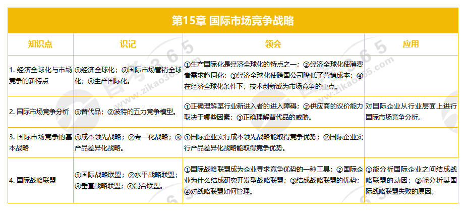 自考365為廣大考生整理了《國際市場營銷學》這一科各個章節考點的學習要求,考生只需針對不同類型的知識點,按識記、領會、應用三種層次來學習和練題,就可以學得更得心應手。