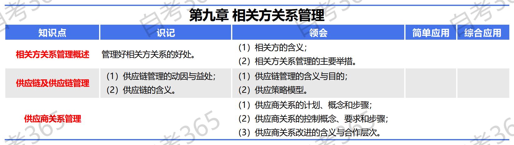 通過構建知識點框架,可以將零散的知識點組織起來,從而更深入地理解知識的內在聯系和邏輯關系,為此,自考365網校教務老師為大家整理了自考質量管理(一)(2018年版)第九章相關方關系管理的知識點框架,幫助你把握學習的重點和方向,讓復習做到有的放矢。