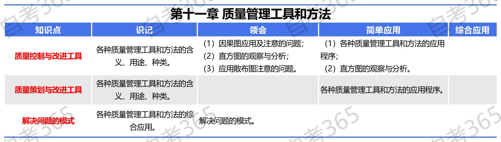 2024年自考質量管理(一)(2018年版)知識點框架:第十一章