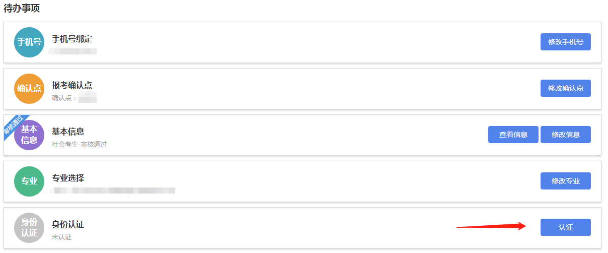 考生首次進入新系統后,需要點擊“我的首頁”填寫代辦事項內容,完善后方可進行報考、免考、轉考、畢業申請等其他操作。