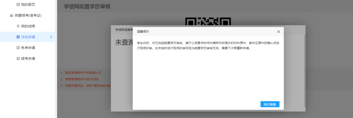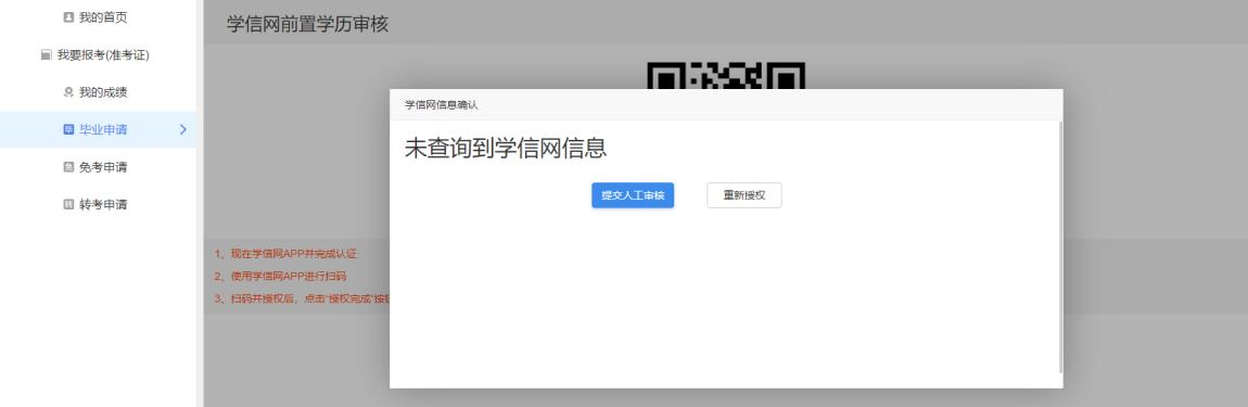 2.如未查詢到學歷信息,提交人工審核,進入人工審核階段。