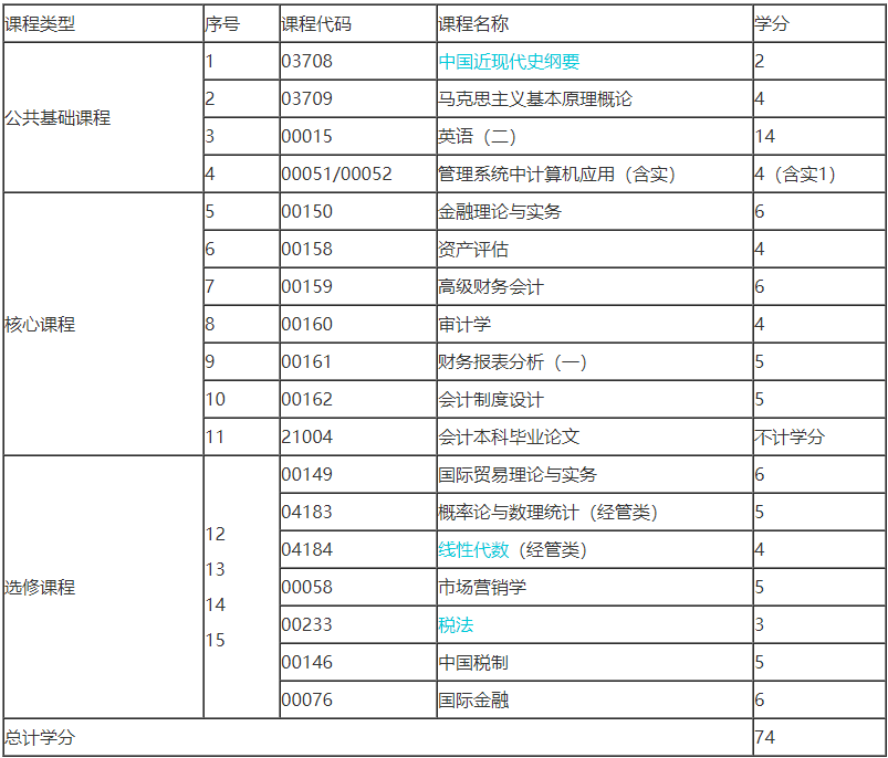 2022年10月可報考:00162 會計制度設計、00076 國際金融(選修課)、00160 審計學、00015 英語(二);